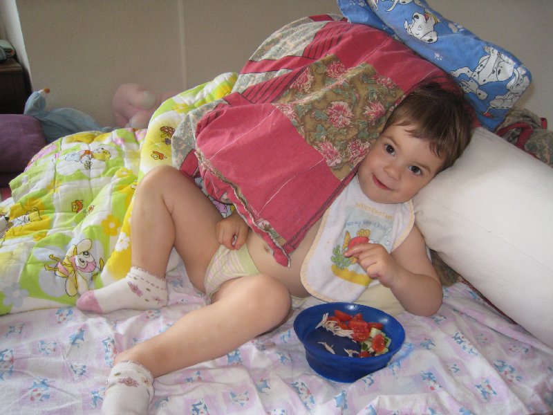 Те4перь полноправно можно зафиксировать этот момент: мы стали говорить абсолютно все. Проглядовали с мужем фильмики недельной давности, и вспомнили, как радовались новым словам дверь и крыша. А сегодня мы просто поражаемся ее разговорам. Ходит и между прочим так все комментирует фразами, которые мы от нее вообще до этого не слышали. В песочнице сегодня ходит босяком, задрала ногу, посмотрела на грязную ступню и разговаривает сама с собой: