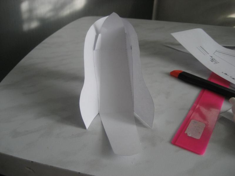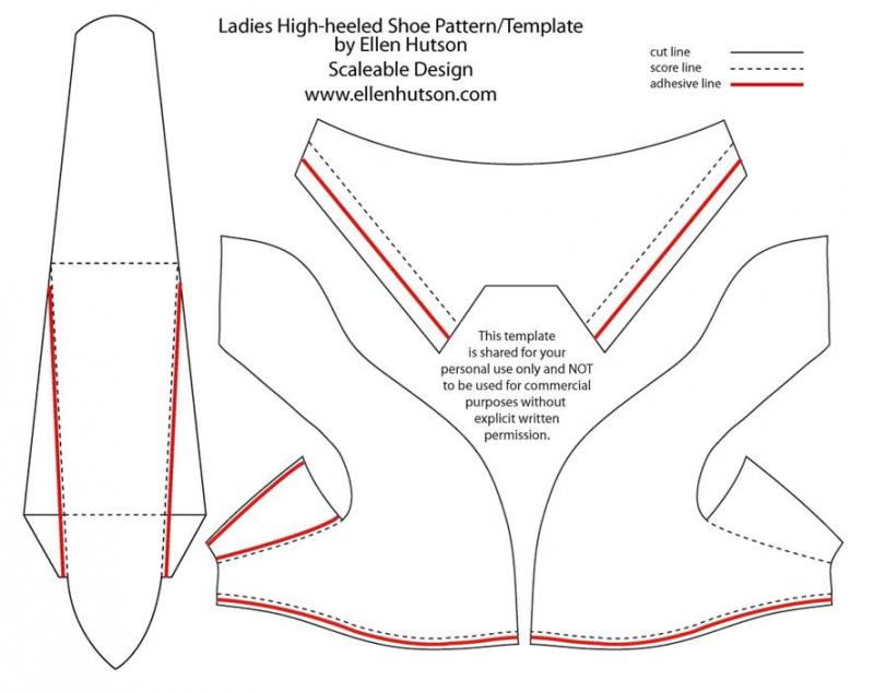 1. Склеиваем заднюю часть туфельки. Пунктирная линия - это сгиб, я проводила по ней канц.ножиком, чтобы точнее сгиб был, жирная линия - место склеивания, тонкая линия - линия разреза (отреза)