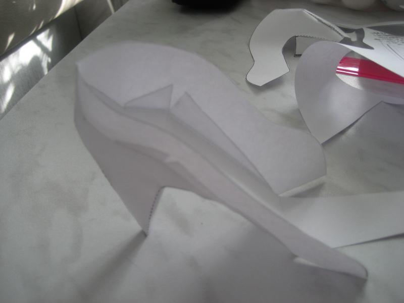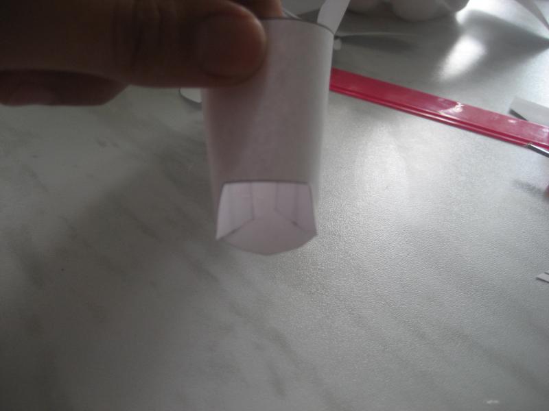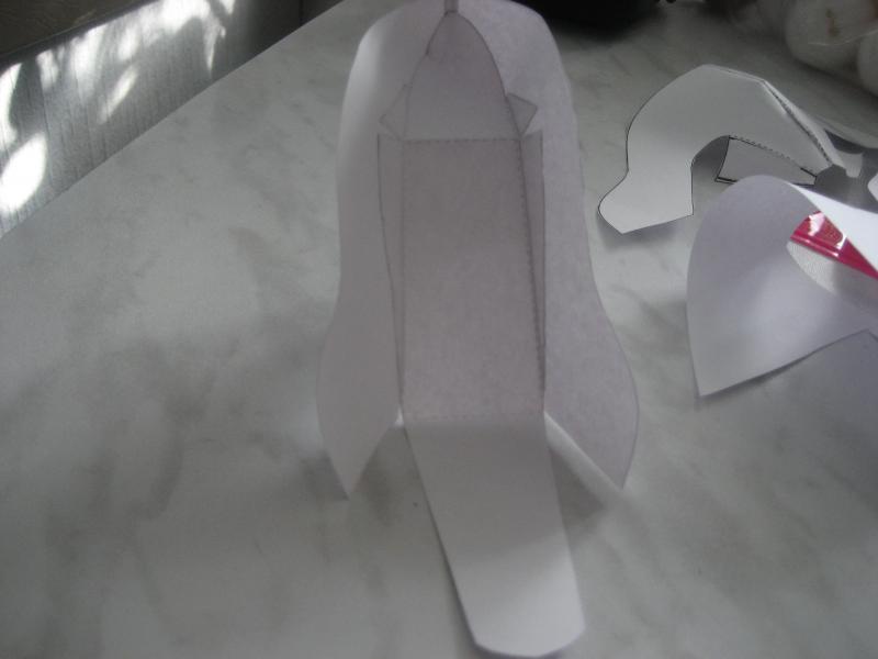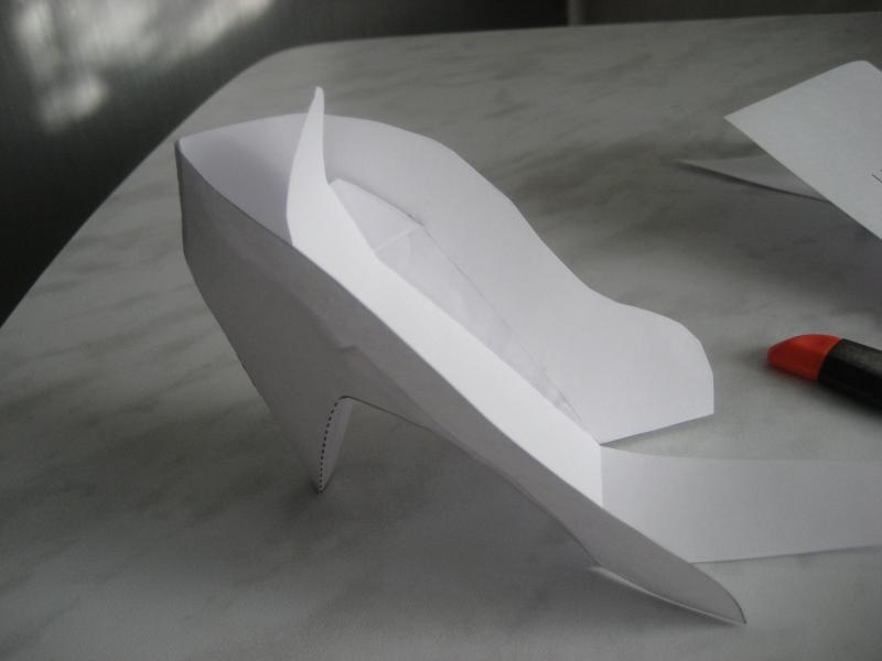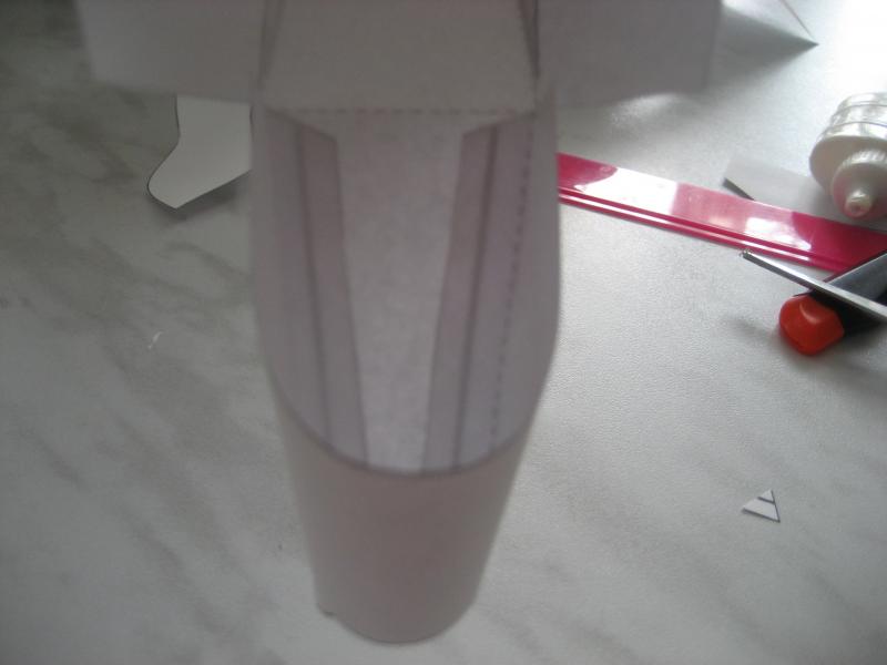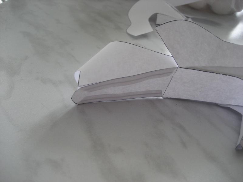 5. Теперь приклеиваем носовую часть, там немного выступали линии сгиба, я их подрезала наискосок.