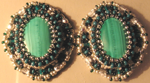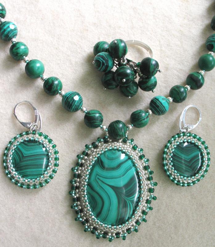 Добрый день! Заказала бирюзовые кабошоны говлита и турквенита в Питере (через Москву заказывать - не скоро было бы) и зеленые граненые бусины-капли Сваровски. Надеюсь в конце следующей недели уже у меня будут. Только кабошонов каплевидной формы у них не было. Я думаю - небольшие овальные на их месте тоже неплохо будут. Бусины пока не показываю - ещё поработать с подборкой и фотографированием нужно. Smile