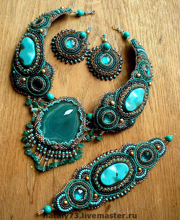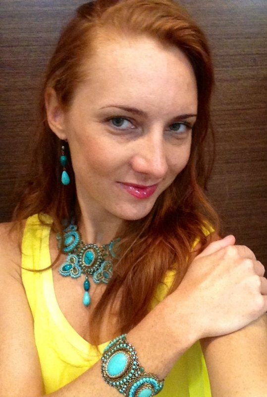 Лариса, добрый вечер, спасибо большое, что доставили прямо домой). Комплект получился - красота, в реалии смотрится еще лучше, чем на фото, сразу видно, какая тонкая работа, цвет яркий -бирюза с золотом,в общем, я в восторге, мужу тоже очень понравился. Спасибо Вам огромное за такую работу! Фото постараюсь сделать в выходные)