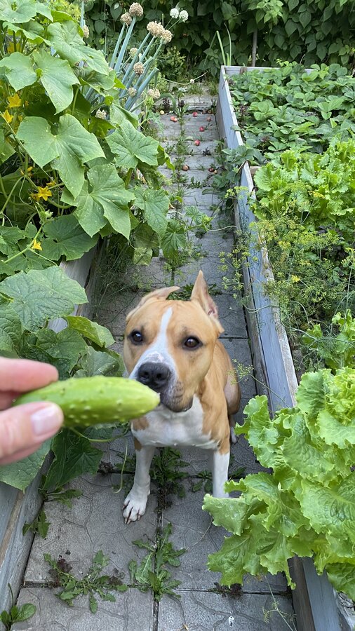 Чуть позже подходит к мужу, время уже было 22:30, фыркнул. Муж спрашивает: гулять захотел, пойдем. Тот обрадовался, но когда надели ошейник, побежал на кухню и на яблоко смотрит. Посмеялись так над ним. На улицу вывели, а он 5 минут и домой.