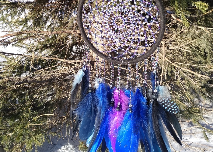 ✨Здравствуйте, мои дорогие звездные мечтатели! Всем, кого притягивают звезды, всем, кто не устает любоваться ими, всем, кто тонет в Млечном пути, посвящается! Как часто, переезжая с одного фестиваля на другой, зачастую ночью, мы останавливали машину, выходили и просто смотрели в звездное небо! Когда кажется, что звезды можно взять рукой, так они близко, и их так много, что не видно неба...и Млечный путь как тропа, уводящая вдаль! И небо...местами черное, местами темно-темно-синее, а на горизонте - там, где должно скоро взойти солнце, оно слегка сиреневое...Недавно меня накрыло воспоминаниями, и родился этот ловец снов...