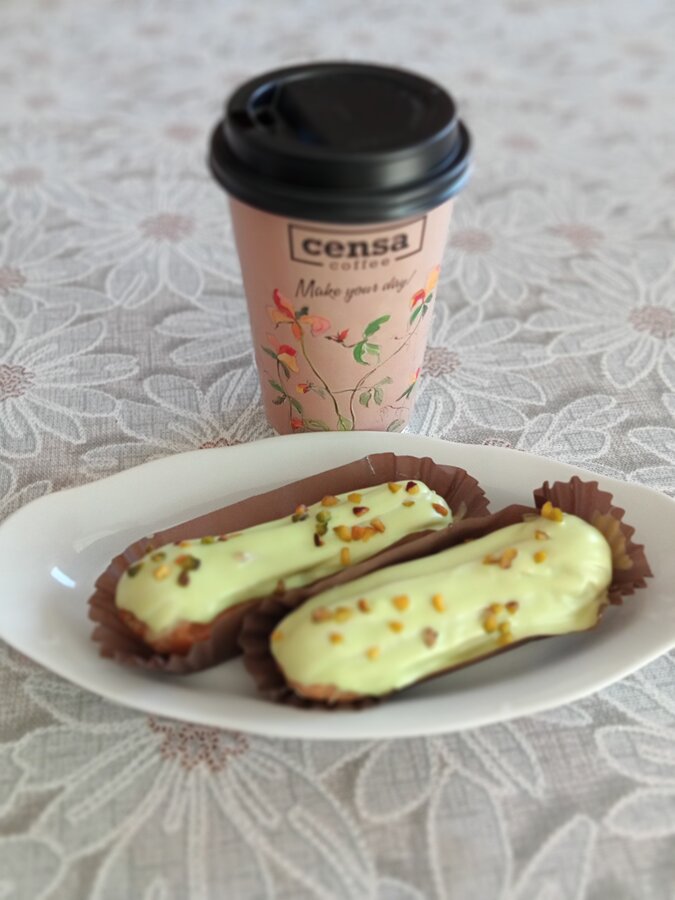 Вообще сладкое стараюсь избегать, но вот сегодня купила себе два эклера с фисташковой начинкой