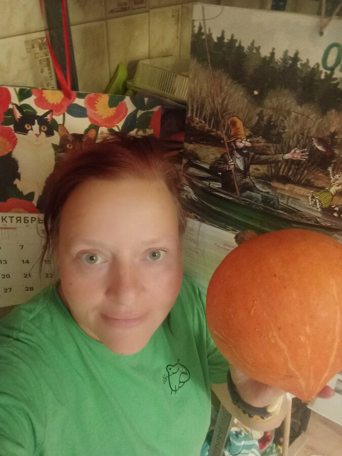 Ехали обратно с пересадкой, 21 не было минут сорок, в общем, пока домой приехала, уже куда, никуда, только тыквенный суп варить. Сварила, нормальный такой супец получился, но так как бОльшую часть тыквы поели свинки, надо ещё покупать, у меня планы кулинарных экспериментов.