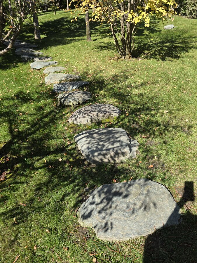 Есть, конечно же, обычные дорожки. А есть вот такие, из камней. Вот я по ним с удовольствием скакала)