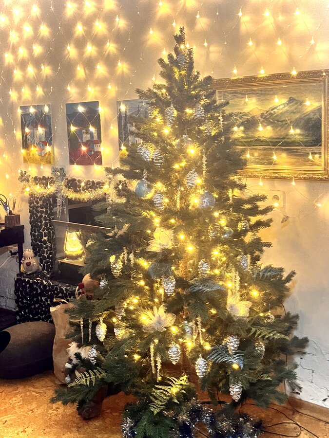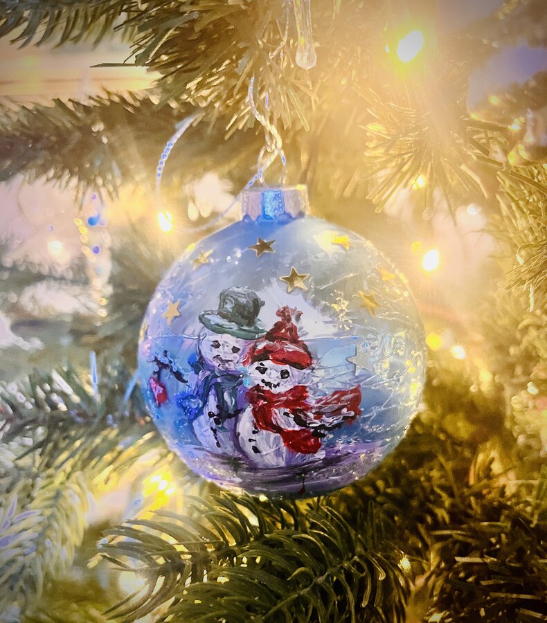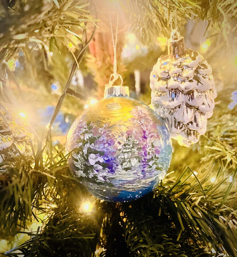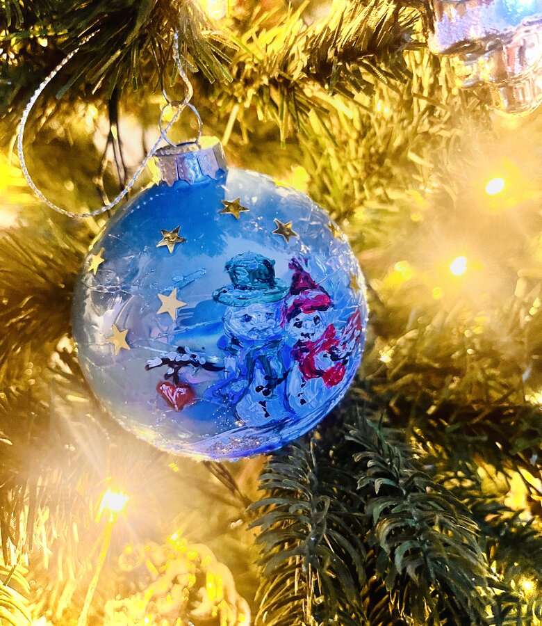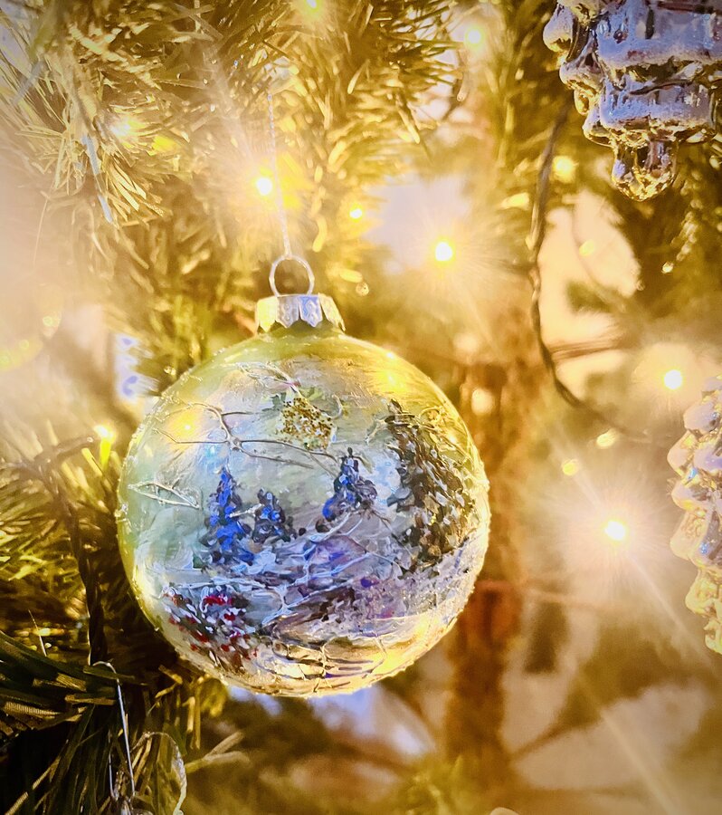 Тем более, когда все для этого есть под рукой: краски, елочные игрушки и, конечно, елка!
