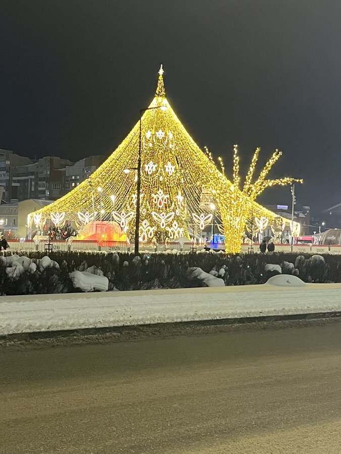 Приехали обратно уже к 12 ночи, и вот такая главная елка у нас: