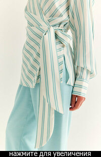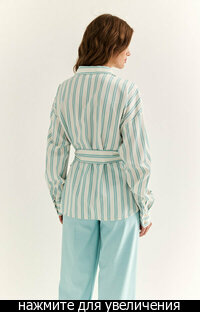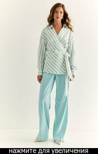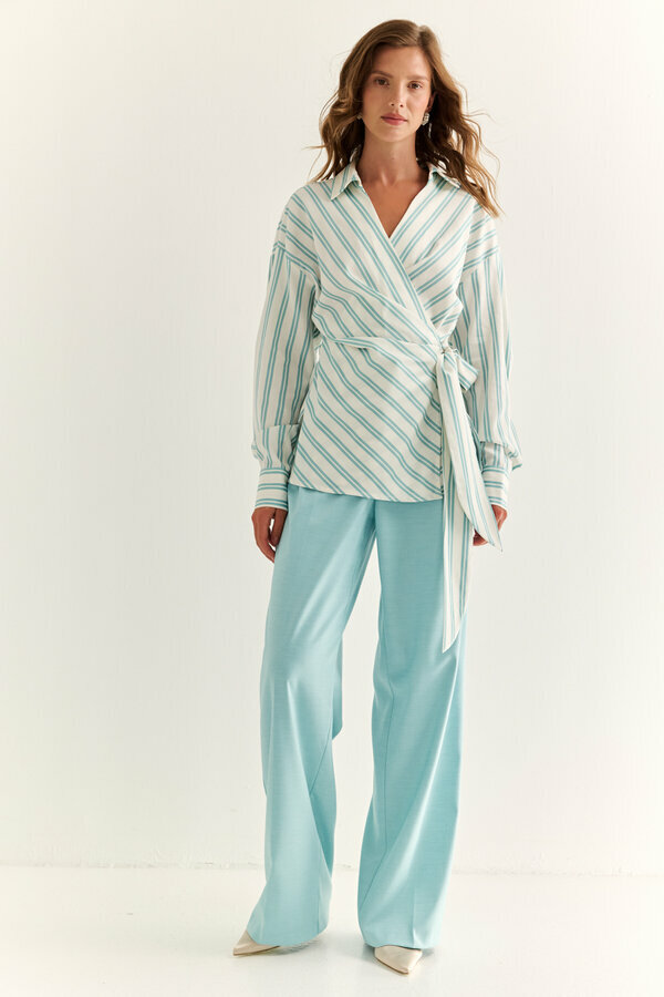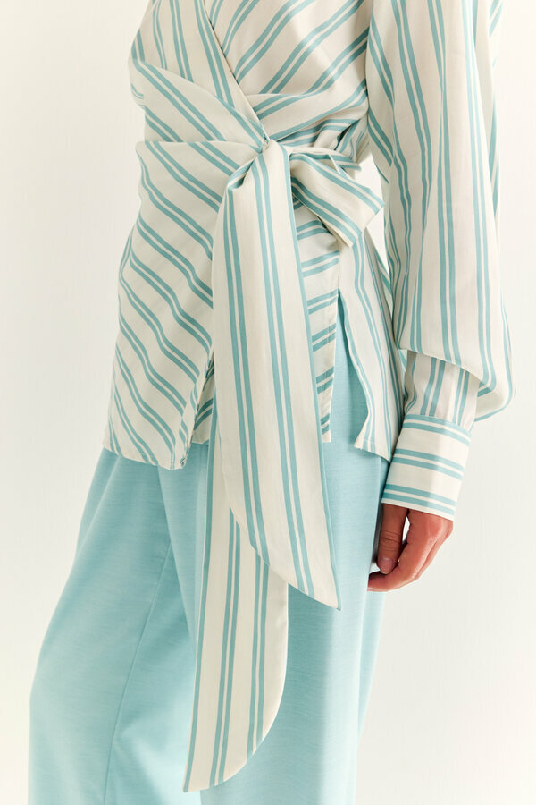Блуза с запахом прилегающего силуэта с V-образным вырезом. Длина до бедер.NEW TREND PREMIUM QUALITY Блузочная ткань в широкую молочно-мятную полоску (50% тенсель, 50% хлопок)