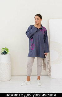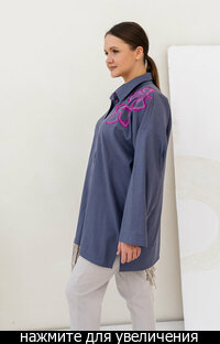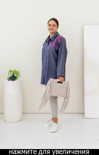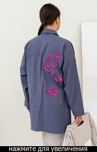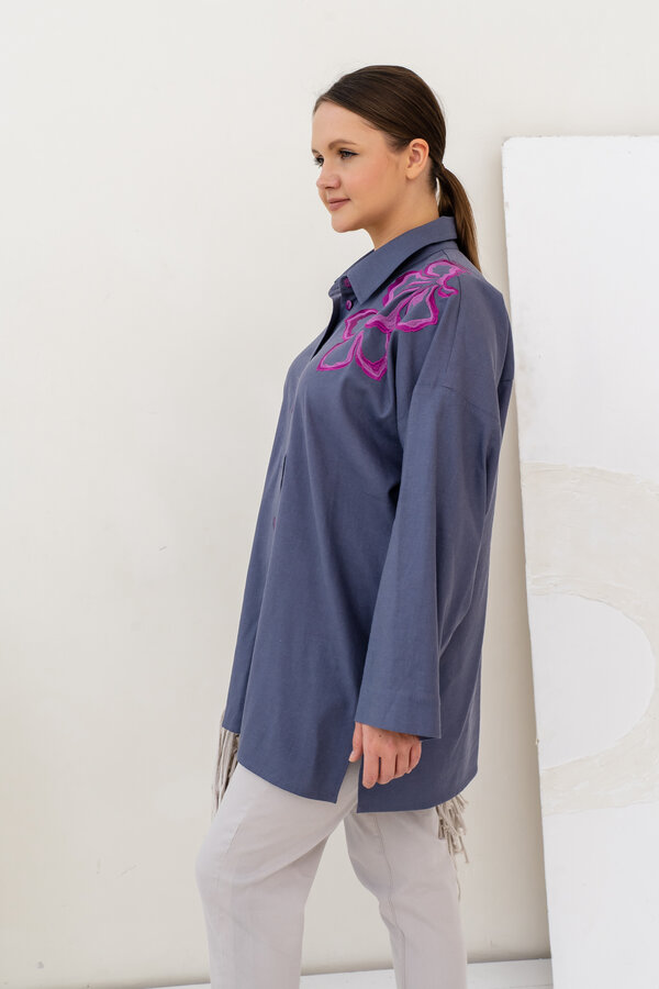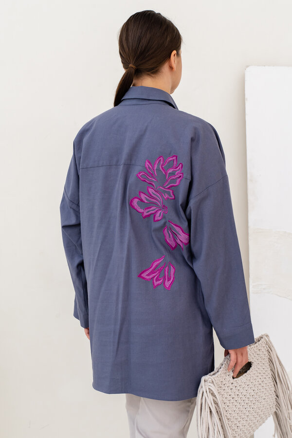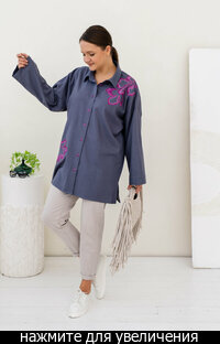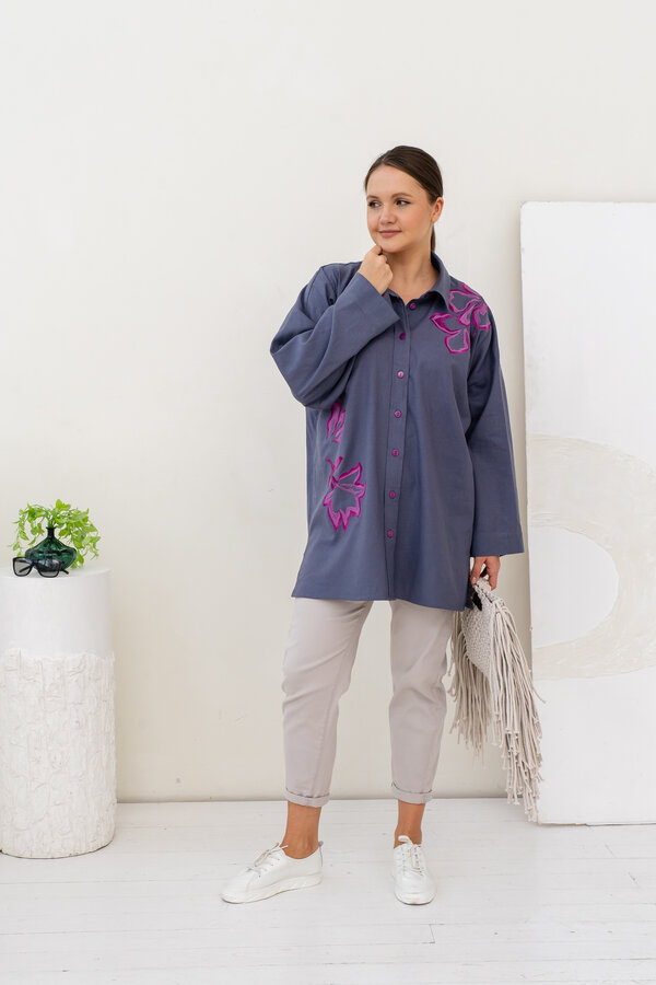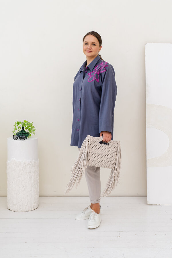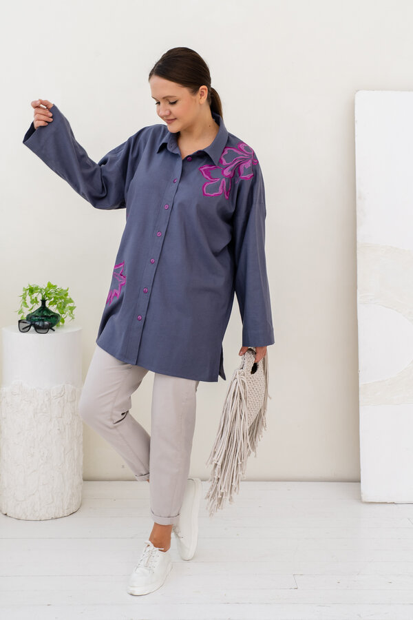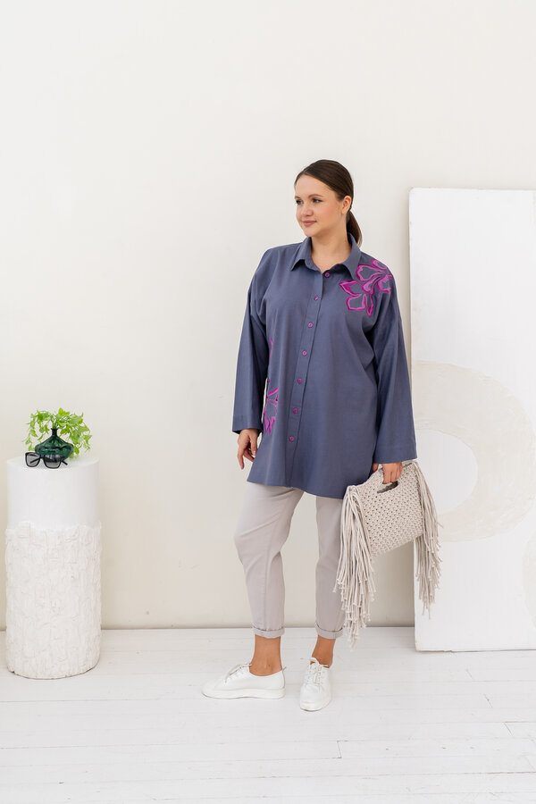 Сейчас: Работаю ]Стильная удлиненная Рубашка в мужском стиле свободного кроя из Итальянского льна с вискозой (50/50) + яркая и контрастная вышивка.