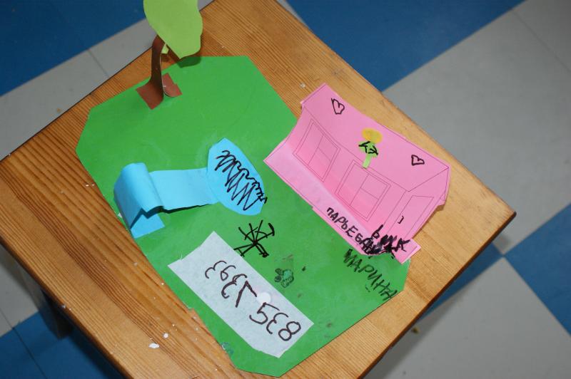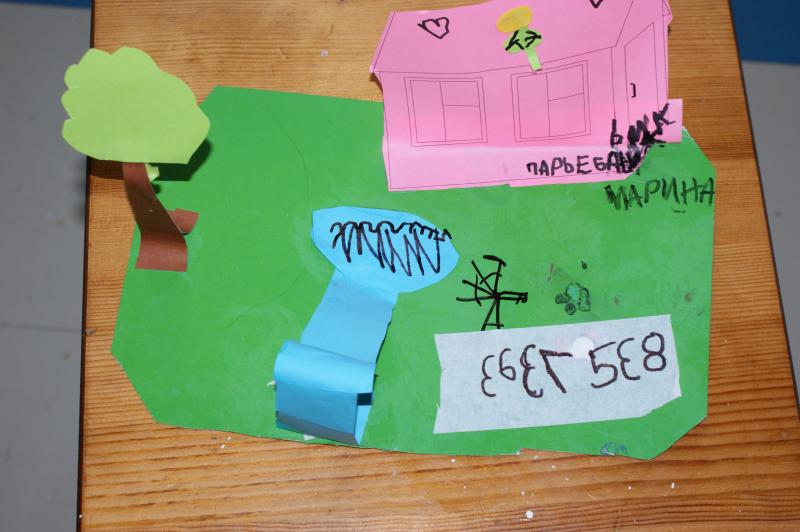 Дочь сделала свою. Однако карусель зачем-то оторвала потом, но подписала и наклеила какие-то шифры. Голубой - горка, внизу небольшой водоём.
