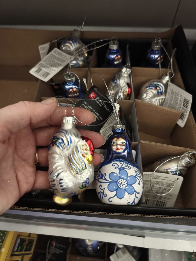 Все игрушки были найдены в гипермаркете Лента на Большевистской. И все из стекла.